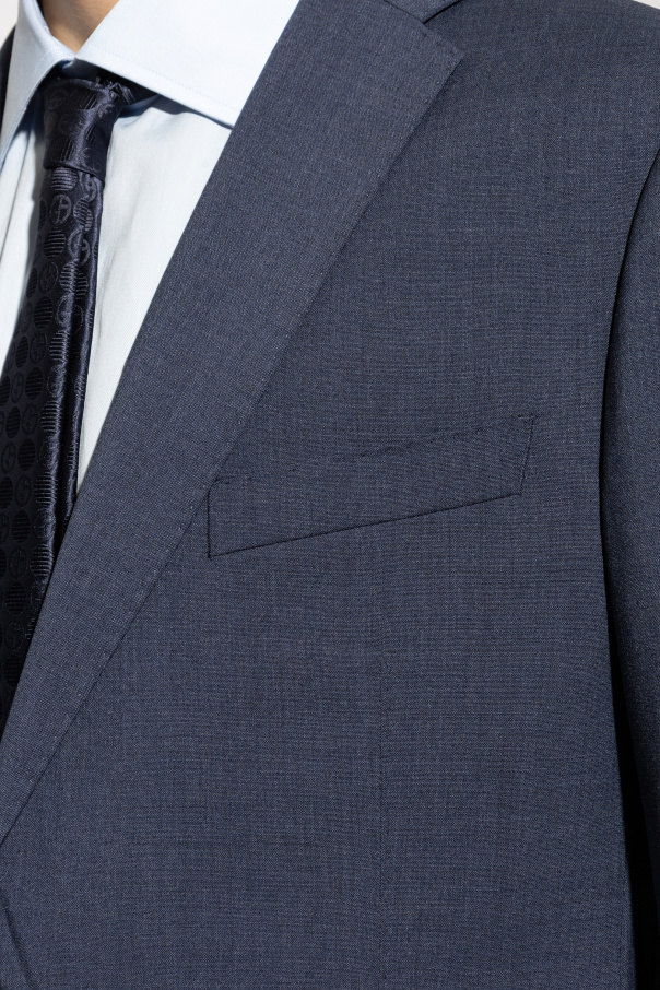 Introducing the Wełniany garnitur by the renowned house of Emporio Armani, epitomizing sophistication and timeless elegance. This exquisite wool suit in a classic navy hue is the quintessence of sartorial excellence. Meticulously crafted from the finest quality wool, this suit ensures both impeccable style and unparalleled comfort. The suit features a single-breasted jacket with three buttons, complemented by straight shoulders and a tailored fit that accentuates the silhouette. The jacket boasts two flap pockets and a chest pocket, with medium-width classic lapels adding to its refined appeal. The trousers are designed with a straight cut, subtly tapering towards the hem, complete with side pockets and a secure zip and button closure. Why Choose This Product? Superior Material: Made from high-quality wool for an elegant look and feel. Classic Design: Single-breasted jacket with three buttons and tailored fit. Elegant Details: Flap pockets, chest pocket, and medium-width lapels. Perfect Fit: Straight-cut trousers with side pockets and secure closures. Universal Appeal: Navy color ensures versatility for various formal occasions.