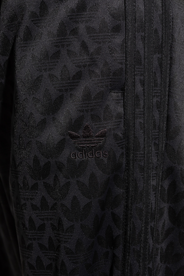 Black sweatpants from ADIDAS Originals. Crafted from recycled material, this pair falls with straight legs and features a monogram pattern, logo embroidery, a drawstring waistband and two zip pockets.
