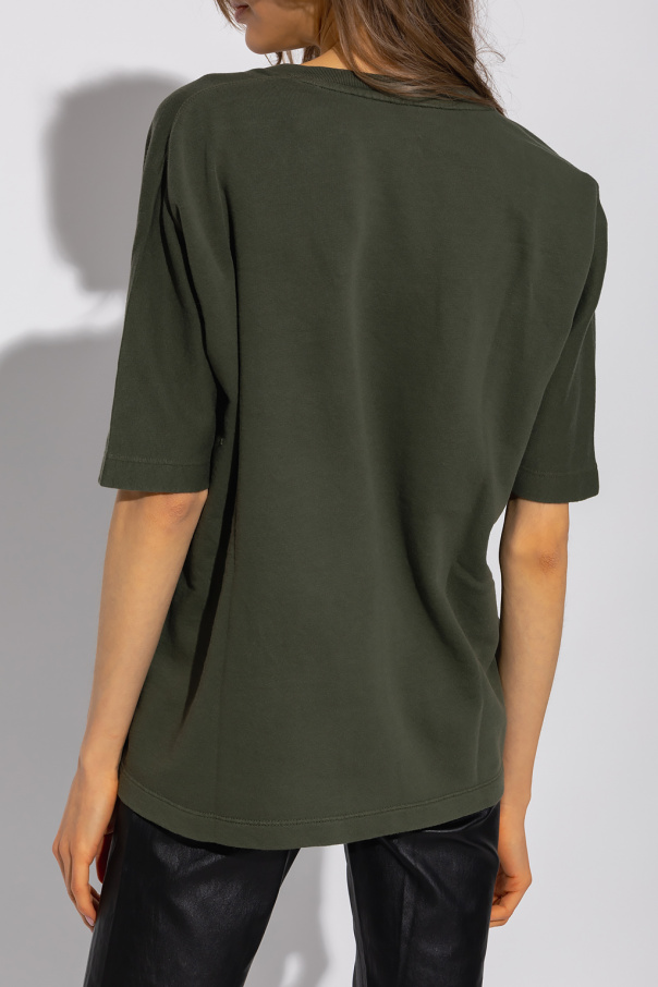 Khaki ‘Portland’ T-shirt from Zadig & Voltaire. Made of cotton, this garment features a glittered logo and ribbed crew neck.