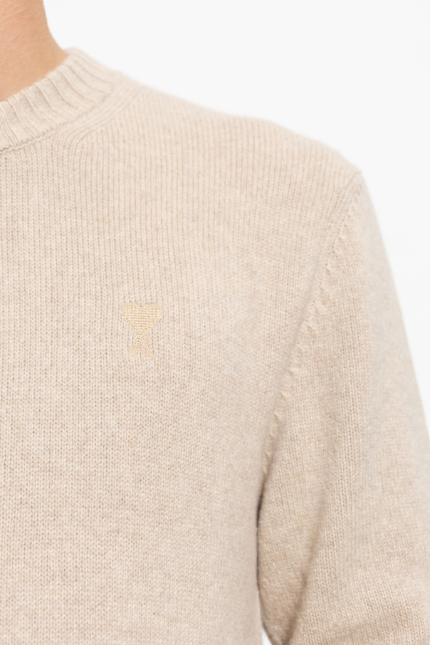 Beige crewneck sweater from Ami Alexandre Mattiussi. Crafted from cashmere, this style features ‘Ami De Coeur’ embroidery on the front and ribbed trims on the collar, bottom hem and cuffs.