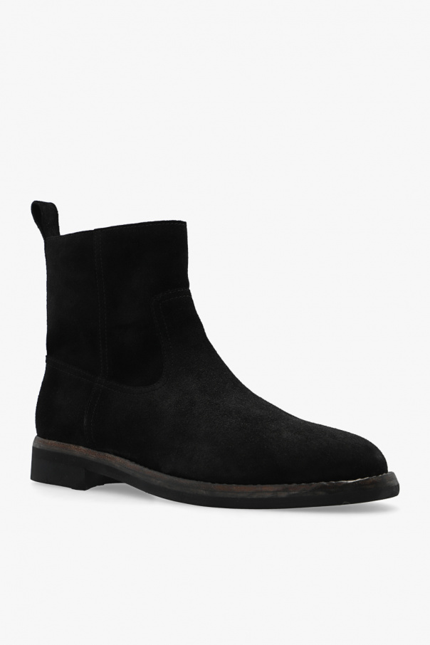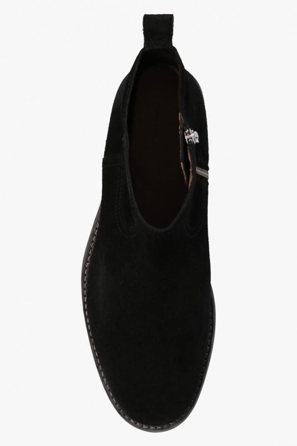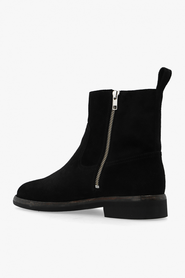 Black ‘Darcus’ ankle boots from Isabel Marant. Crafted from calf suede, this model features a round toe, a side zipper and a black and brown rubber sole.