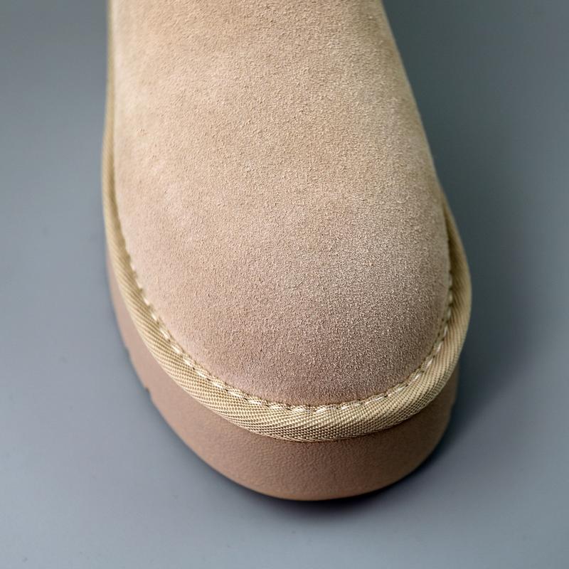 Стильні зручні бежеві уггі жіночі замшеві на платформі, зимові, натуральна