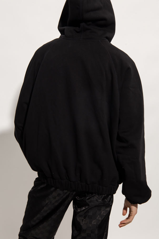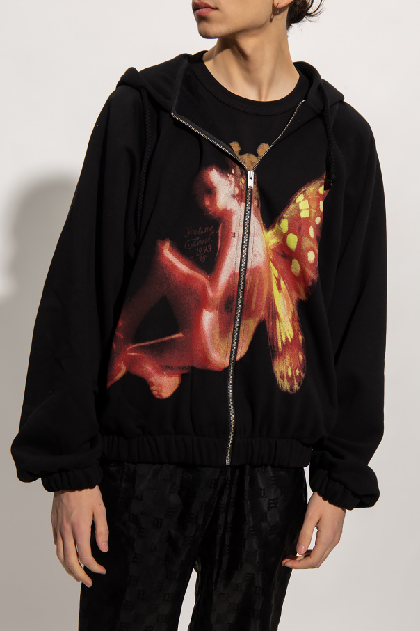 Black hoodie from MISBHV, the ‘Metamorphosis 1993’ collection. Crafted from cotton, this garment features a zip fastening, multicolored pattern, logo detail, two slip pockets, drawstring hood and ribbed trims at the hem and cuffs.