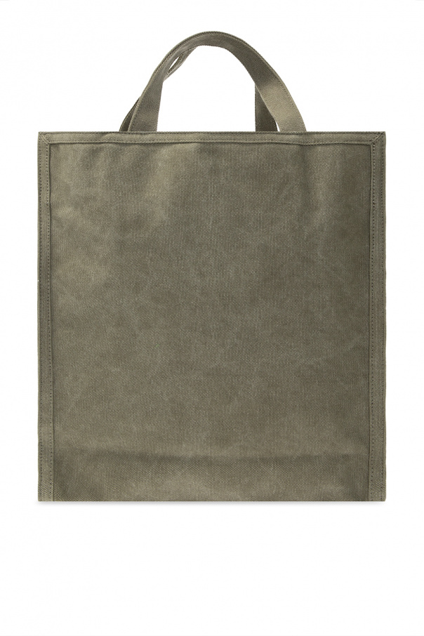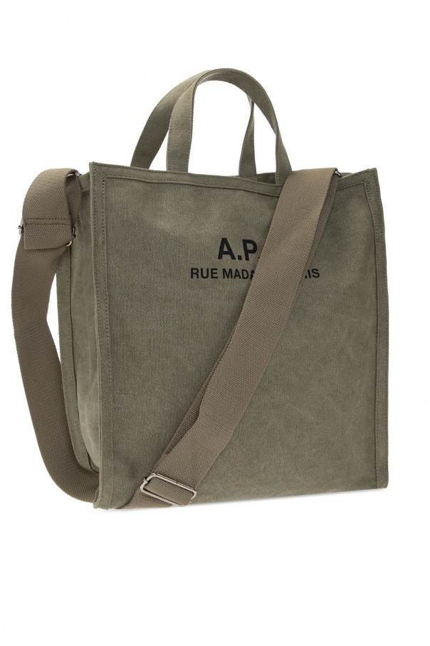 Green shopper bag from A.P.C. Made of cotton, this design is decorated with a printed logo pattern in black and complete with two half-round handles, adjustable strap, silver-tone metal hardware and one internal compartment with two zipped partitions.