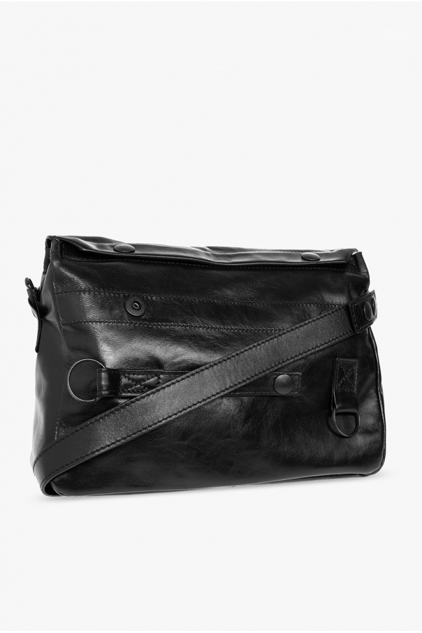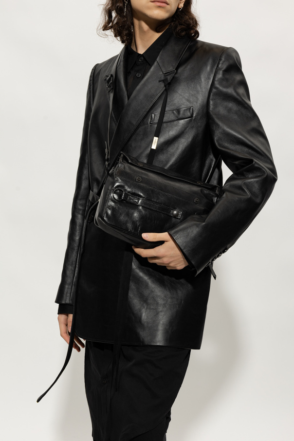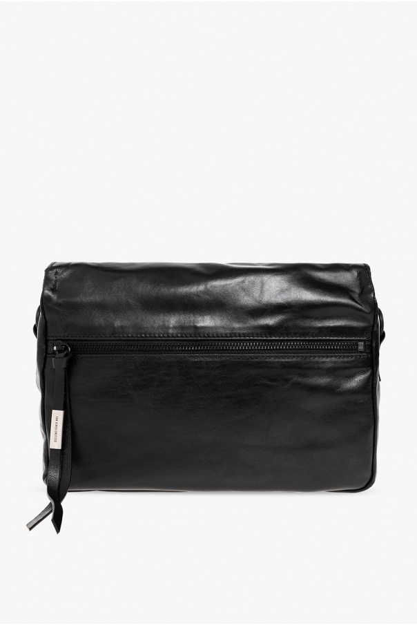 Black ‘Veva’ shoulder bag from Ann Demeulemeester. Crafted from leather, this design features a flap with adjustable snap closures, decorative keyrings on the front, a detachable shoulder strap, black metal hardware and one internal compartment with a slip pocket.