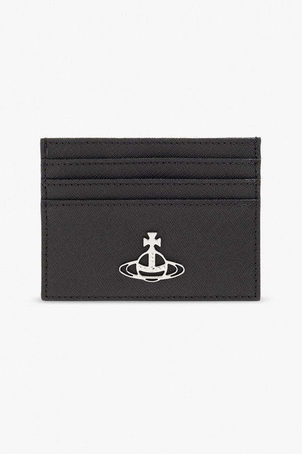Black card case from Vivienne Westwood. Made from leather, this design features seven card slots and a silver-tone logo plaque on the front.
