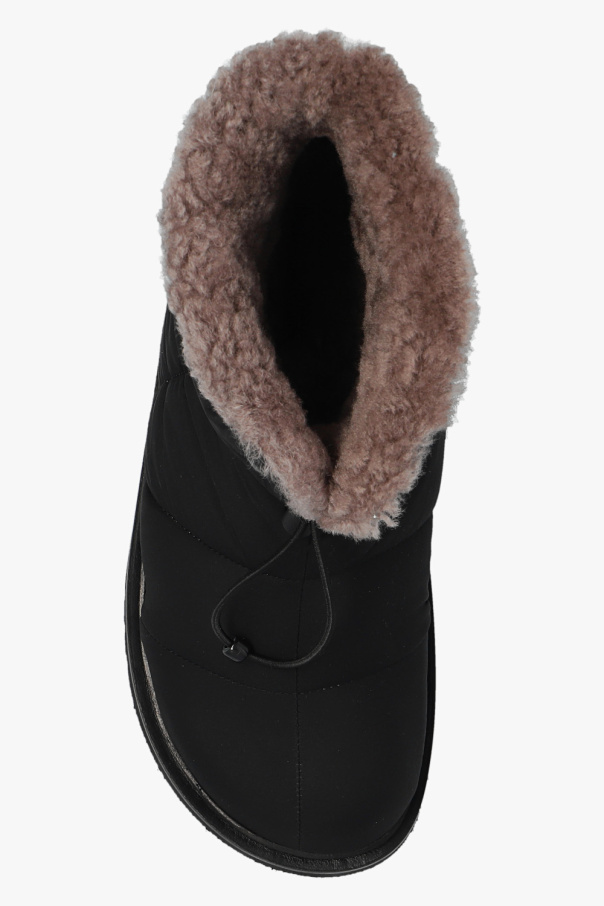 Black ‘Halla’ snow boots from Samsoe Samsoe. Crafted in quilted fabric, this model sits on a black rubber sole and features a drawstring fastening and a shearling lining.