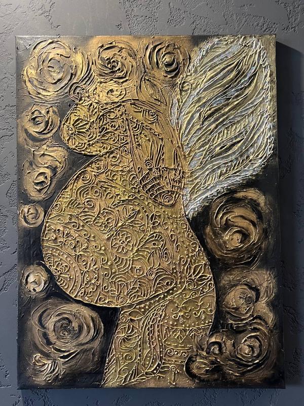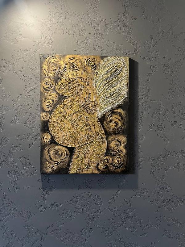 Современная картина, текстура паста, акрил, все элементы выполнены вручную,крыла сияют при освещении,размер 45*60