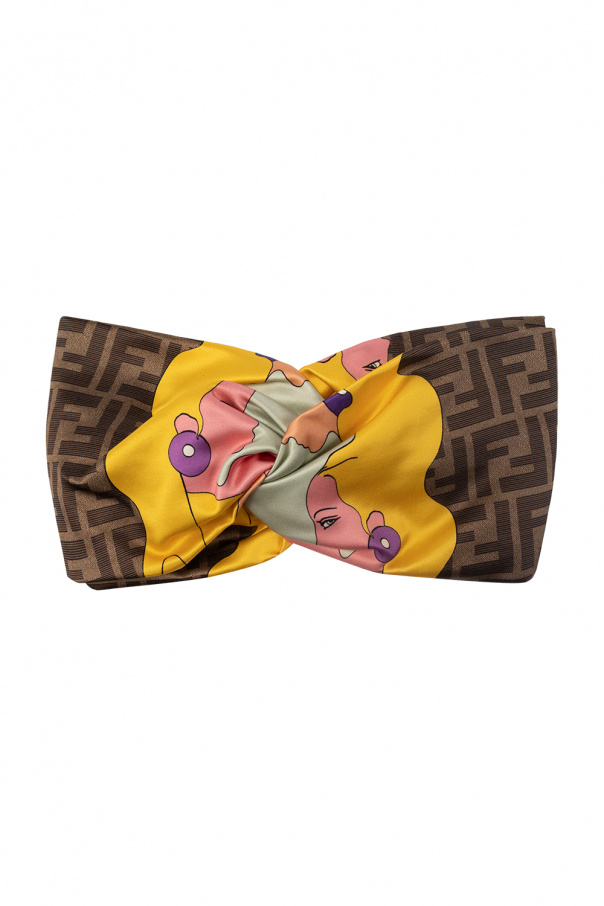Multicoloured headband from Fendi. Crafted from a cotton and silk blend, this item features a logo pattern and an elastic tape at the back.