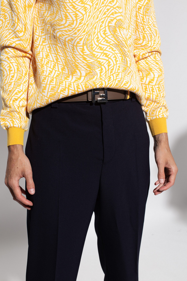 Yellow and brown reversible belt from Fendi. Crafted from calf leather, this item showcases the signature FF monogram and a silver-tone branded buckle.