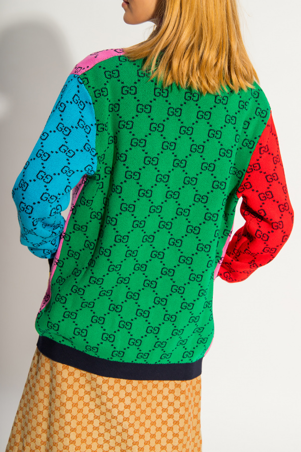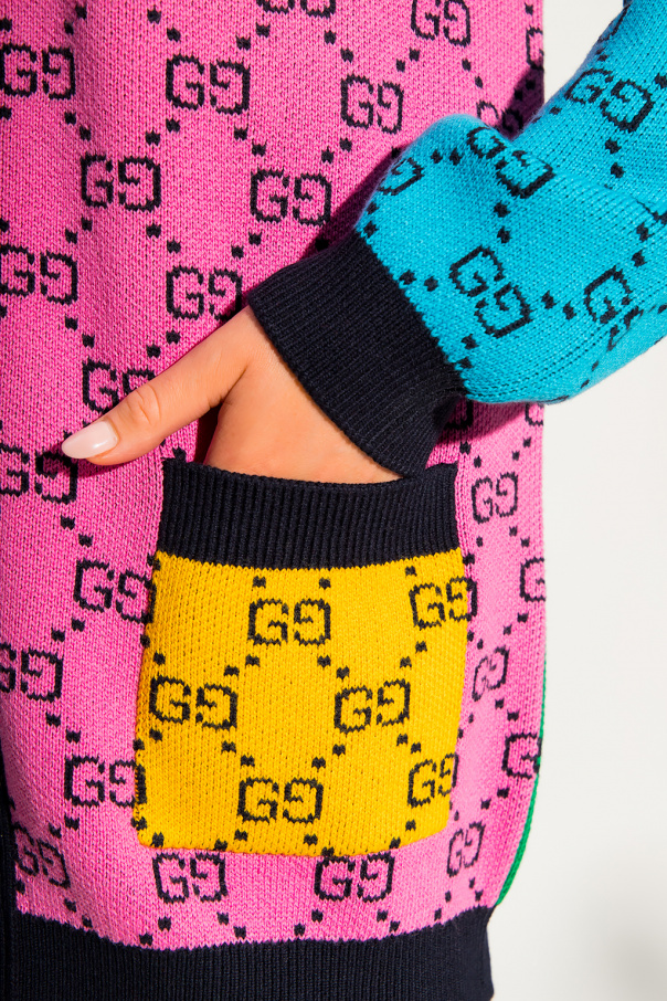 Multicolored cardigan from Gucci. Crafted from a wool blend, this design features buttons, an embroidered logo pattern, two slip pockets and ribbed trims at the hem and cuffs.