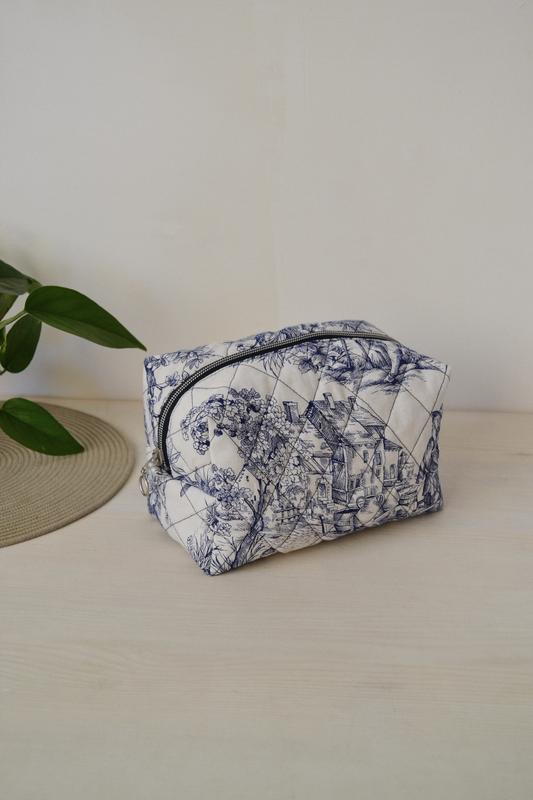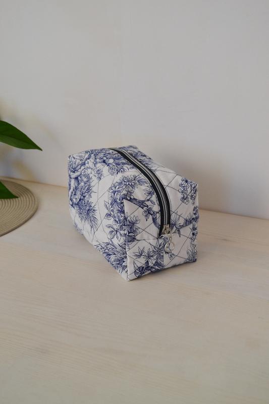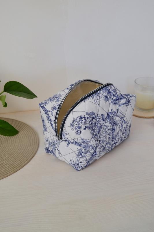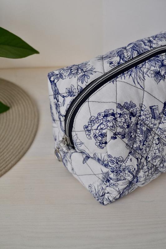 Косметичка выполнена в едином экземпляре. Светлого цвета с интересным рисунком