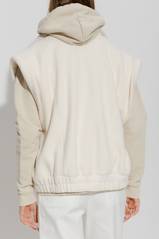 Cream ‘Suela’ oversize vest from Iro. Made of fleece, this garment is complete with snap buttons, double collar, two slip pockets and ribbed hem.