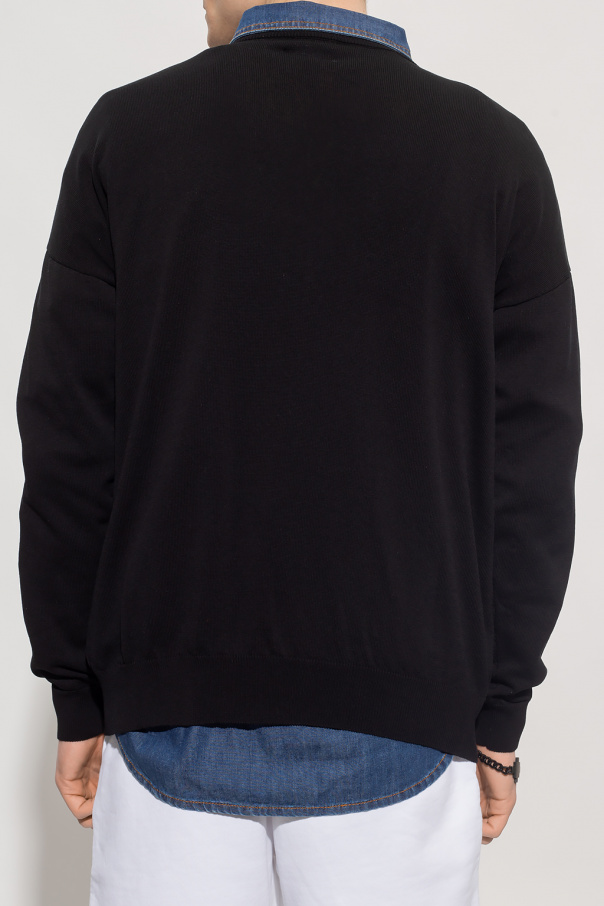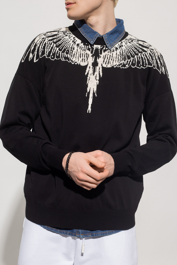 Black sweater from Marcelo Burlon. Made of cotton, this garment is enriched by an embroidered animal motif in white and ribbed trims at the crewneck, hem and cuffs.