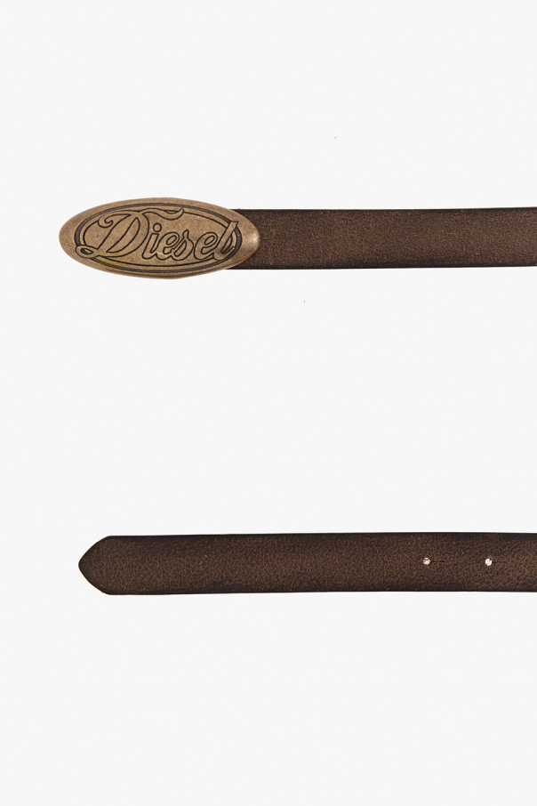 Brown ‘B-Alyen’ belt from Diesel. Made from cow leather, this item features an antiqued gold-tone buckle with an embossed vintage logo of the brand.