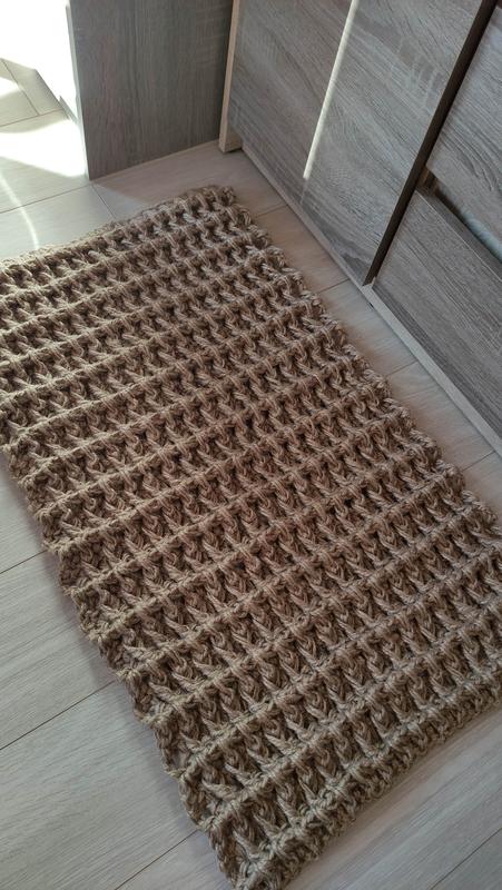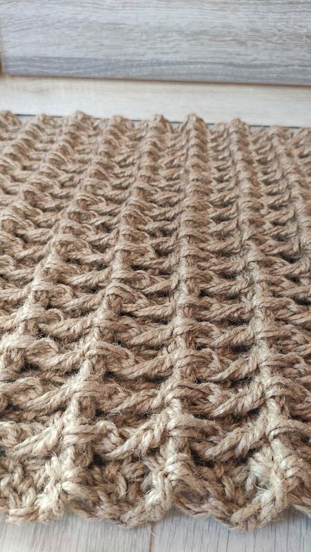 Двусторонний коврик из натурального джута вязаный крючком. Толстый рифленый узор дает непревзойденный массажный эффект при прикосновении. Высокое качество. Ручная работа.