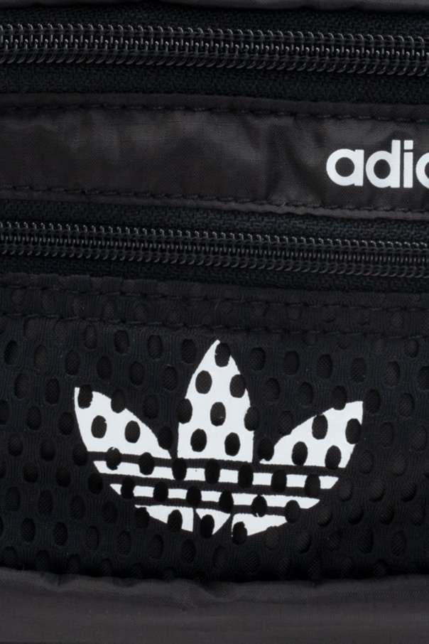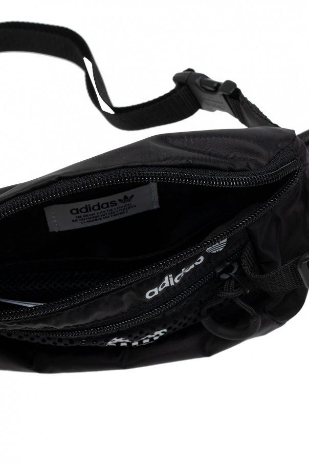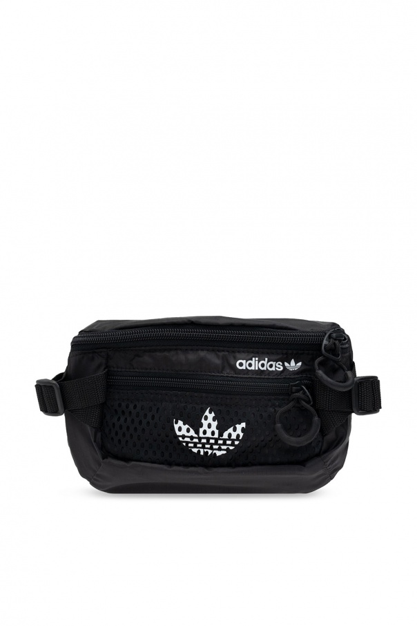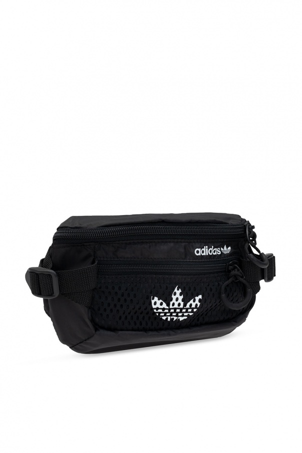 Black belt bag from ADIDAS Originals. Printed with the brand's logo in white, this item fastens via a zip and features mesh details, an external zip pocket on the front, an adjustable strap and one internal compartment with a slip pocket.