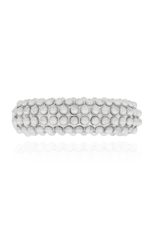 Introducing an exquisite ensemble from AllSaints, this set of two rings embodies the fusion of simplicity with intricate design, crafted to enhance the allure of any attire. The first ring in the set stands out with its smooth, wide band and lustrous silver hue, offering an epitome of elegance in its minimalistic charm. Complementing it, the second ring boasts a more elaborate structure, adorned with an array of small, round elements that create a textured pattern across the band, imbuing it with a rich, tactile appearance. Both pieces are meticulously crafted from a blend of 94% brass, lending durability and a premium feel, whilst 5% plastic and 1% cubic zirconia add lightness and a sparkle, respectively, culminating in a harmonious balance of materials. The absence of overt branding or logos allows the inherent beauty and craftsmanship of the rings to shine, making them versatile additions to any jewelry collection. Worn together or individually, these rings make a striking statement, as showcased in detailed photographs that highlight their scale, proportions, and unique characteristics when adorned on a finger. The detailed images provide an intimate look at the smooth and textured surfaces, emphasizing the contrast and complementarity of the set. Why Purchase This Set? Exclusive Design: A unique combination of simplicity and detail, offering versatility and elegance. Premium Materials: High-quality brass enhanced with plastic and cubic zirconia for durability and shine. Versatile Wear: Suitable for a myriad of occasions, these rings can elevate both day and evening looks. Attention to Detail: No detail is overlooked, from the composition of materials to the intricate patterns.