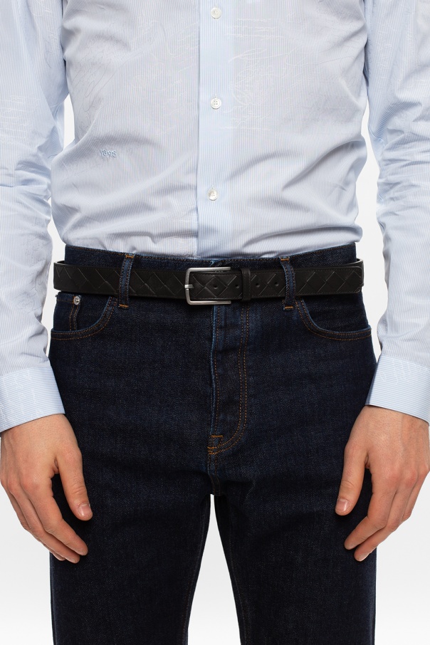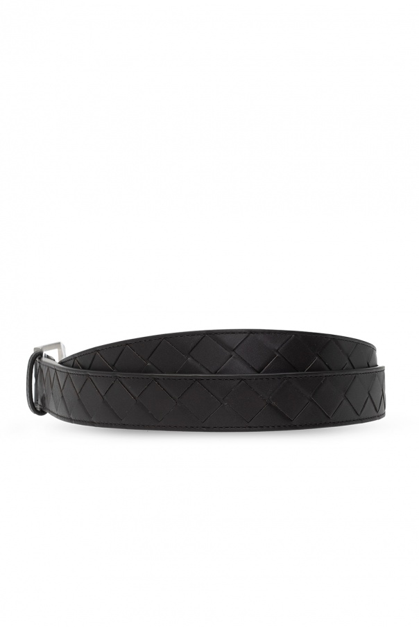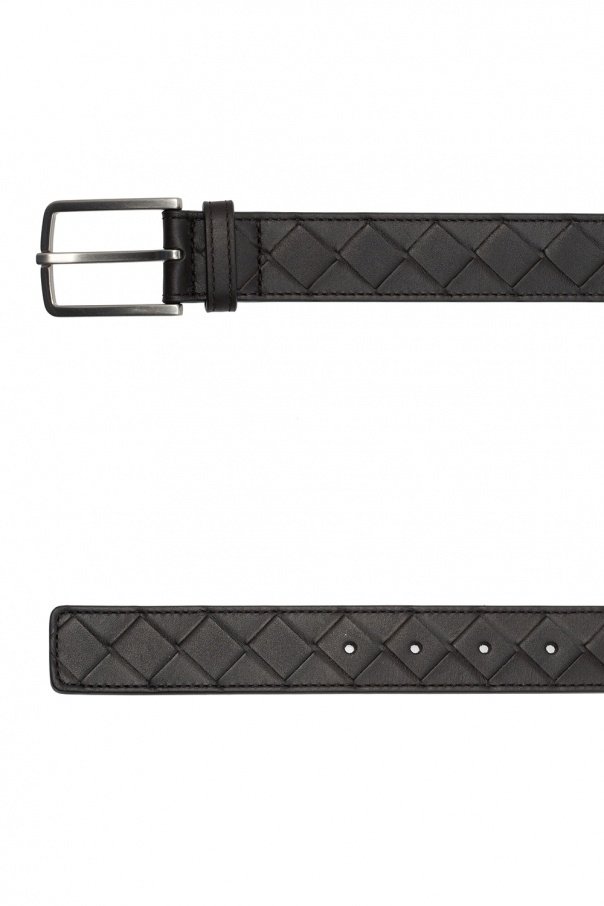 Brown belt from Bottega Veneta. Crafted from leather with the signature Intrecciato weave, it fastens with a silver-tone buckle.