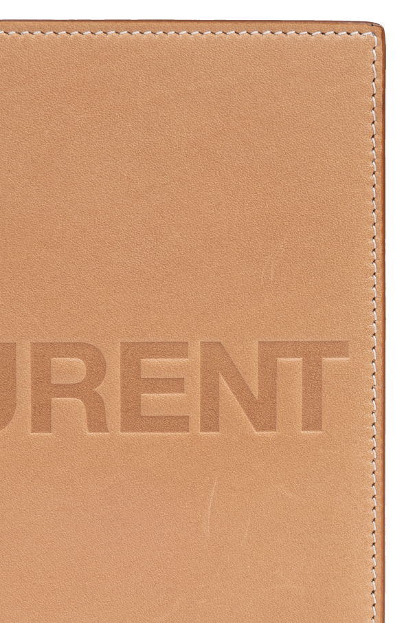 Introducing the Saint Laurent Passport Holder, a masterpiece of craftsmanship and functionality. This exquisite accessory, rendered in a sophisticated beige hue, epitomizes the understated elegance that the brand is renowned for. Crafted from premium, smooth leather, its texture and finish convey a sense of luxury that is palpable to the touch. The holder's design is both sleek and practical, featuring a non-zippered, rectangular silhouette that ensures your travel essentials are both secure and accessible. The front of the holder showcases a discreetly embossed logo, a testament to Saint Laurent's attention to detail and commitment to quality. This subtle embellishment is perfectly matched to the color of the leather, enhancing the holder's refined aesthetic. Inside, the holder is equally impressive, boasting the same high-quality leather as the exterior. It offers a dedicated passport compartment and four card slots, ensuring that your travel documents and essentials are organized and easily retrievable. The interior also features embossed details about the brand, adding a touch of exclusivity. Why Purchase This Product? Elegant design with subtle, embossed logo detailing, reflecting the luxury of the Saint Laurent brand. Made from 100% premium leather, promising durability and a refined touch. Practical interior layout, including a compartment for your passport and four card slots, keeps essentials organized. Impeccable craftsmanship, evidenced by precise, even stitching and a flawless finish.