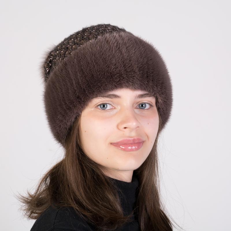 Жіноча хутряна норкова шапка на в'язаній основі з помпоном з хутра песця, розміри від 54 до 60 см, матеріал підкладки/основа шапки: подвійний трикотаж, помпон з хутра песця, хутряна шапка доступна в 15 видах кольору хутра та трикотаж.