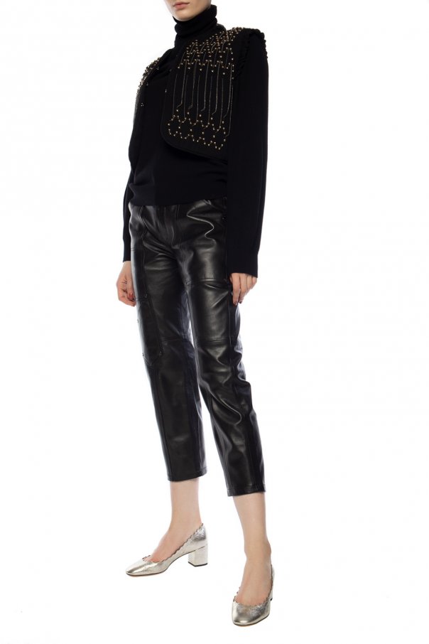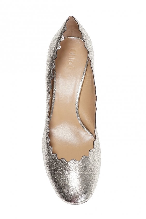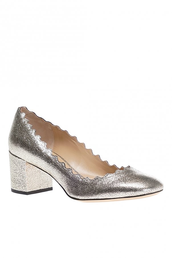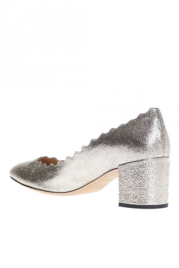 Silver-tone 'Lauren' pumps with a texture from Chloé. Decorated with scalloped edges. Beige leather sole.