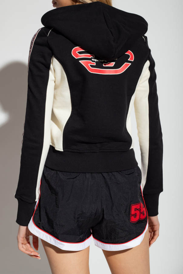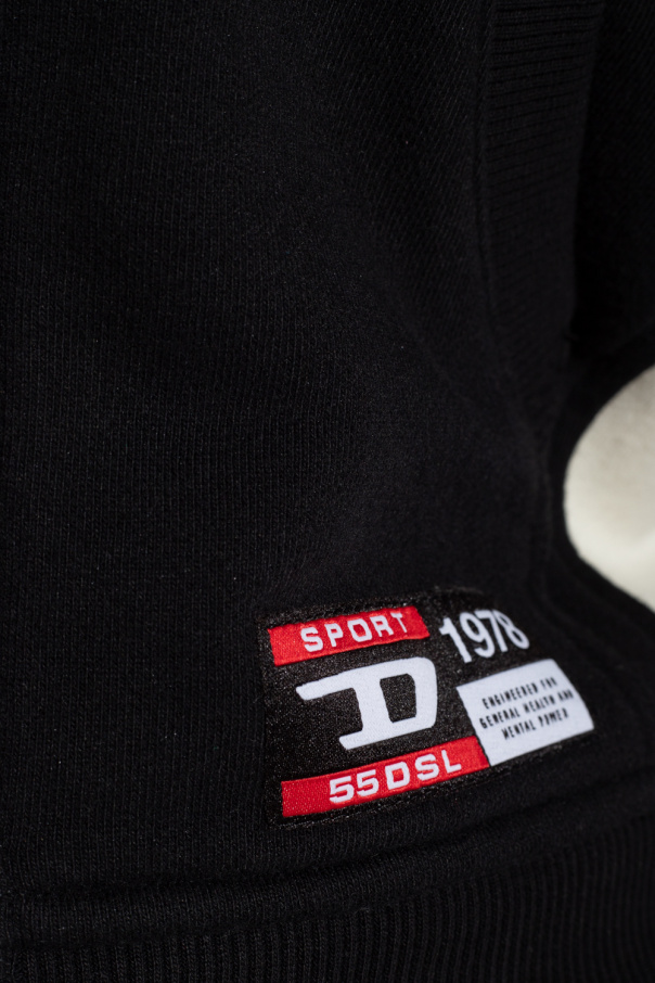 Black ‘AWST-COORT-HT04’ cotton sweatshirt with a drawcord-adjustable hood from Diesel, the ‘DIESEL SPORT’ collection. Emblazoned with branded tapes and a patch, this style features a zip fastening, two slip pockets and elasticized trims on the bottom hem and cuffs.