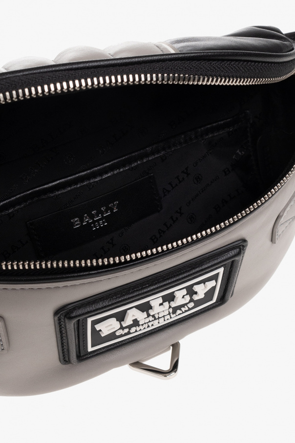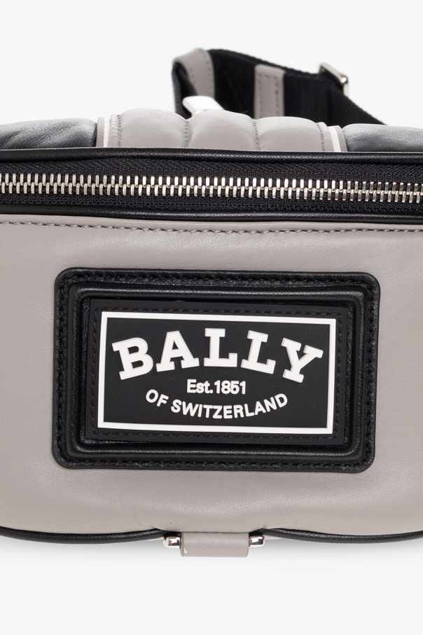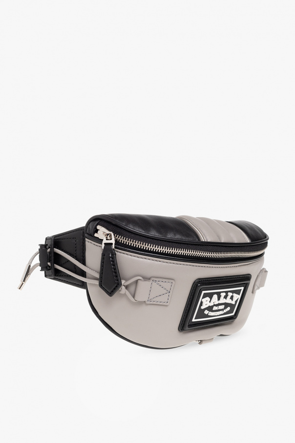 Grey and black belt bag from Bally. Made of leather, this model is complete with a zip fastening, white and black logo patch, adjustable belt, one internal compartment and silver-tone metal hardware.