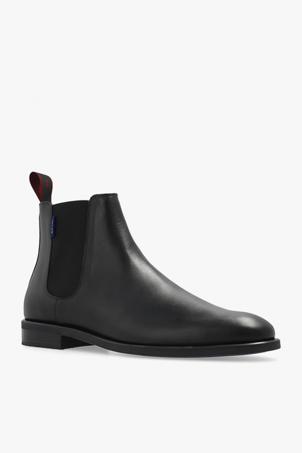 Black ‘Cedric’ Chelsea boots from PS Paul Smith. Made of leather, this pair features elastic side panels, almond toe and rubber sole in black and dark blue.