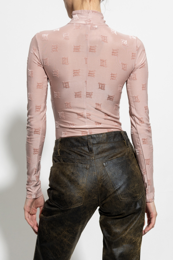 Light pink turtleneck body from MISBHV, the ‘1978–1982’ collection. Fastened with snaps, this long sleeve design is enriched by a monogram pattern with a velour finish.