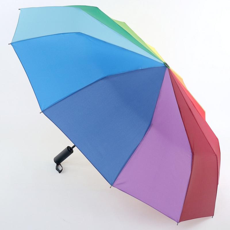 Крепкий женский радужний зонтик с каркасом на 12 спиц. За счет этого купол