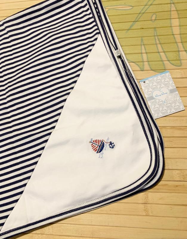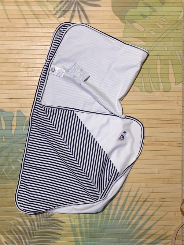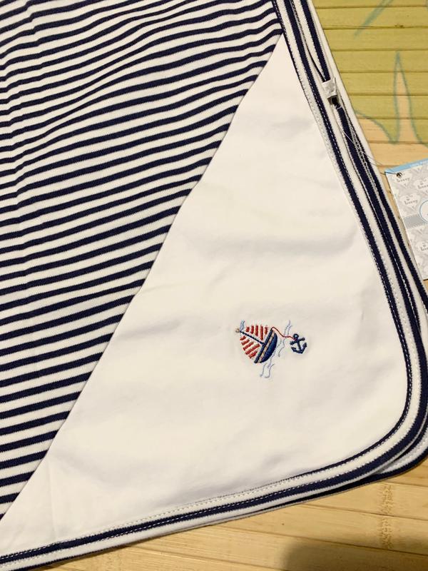 Мягкая хлопковая пеленка от HELEN MARLEN, двойная - с одной стороны белая, с другой в синюю полоску с вышивкой.