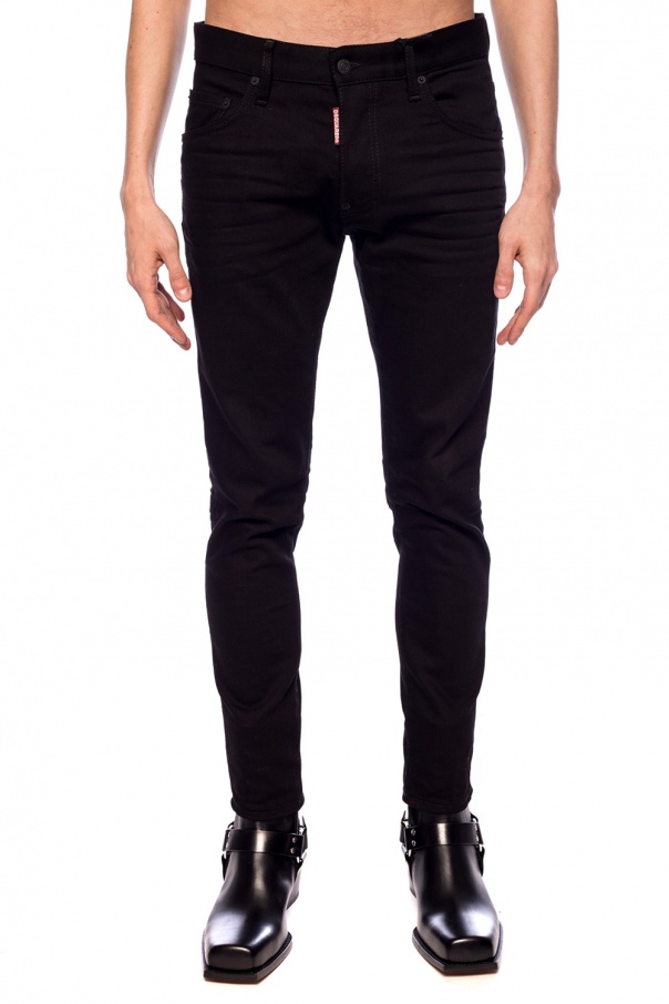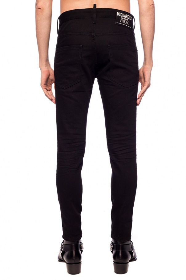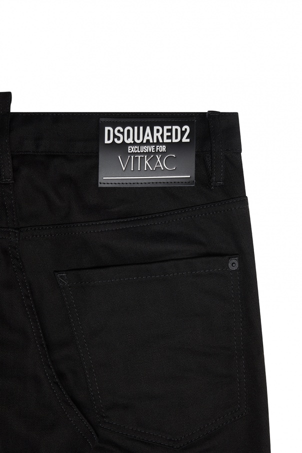 Black jeans from Dsquared2 x Vitkac, limited ‘Exclusive for Vitkac’ collection. Fastened with buttons. Decorated with a patch featuring a white logo print. Two slip pockets on the front, two at the back. Tapered legs.