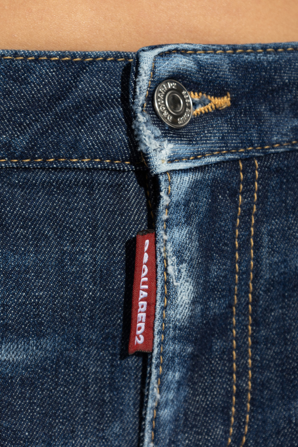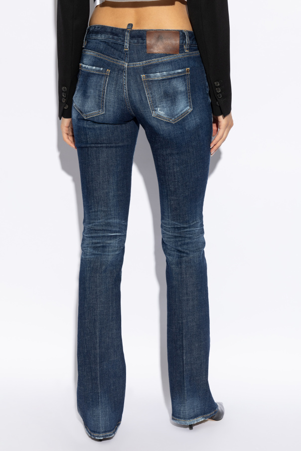 Introducing the exclusive Flare Jeans from the esteemed fashion house DSQUARED2. These jeans epitomize sophistication and style, blending contemporary design with vintage charm. Crafted from durable, dark blue denim, these high-rise jeans feature a subtle faded effect, imparting a chic, slightly vintage appearance. The Flare cut ensures a flattering silhouette, with legs that gently widen towards the bottom. Distinctive details include a darker patch with the brand's logo on the back pocket and a striking red tag with the DSQUARED2 logo sewn into the front pocket. The jeans also boast prominent, contrasting stitching that highlights their robust construction. Additional features encompass a secure zipper and a metal button engraved with the brand's logo, ensuring a perfect fit. The standard pocket layout includes two front and two back pockets. Why Choose This Product? Quality Material: Made from premium denim for long-lasting wear. Unique Style: High-rise and Flare cut for a timeless, elegant look. Attention to Detail: Contrasting stitches and designer logo tags for a distinctive appearance. Practical Design: Five functional pockets for convenience.