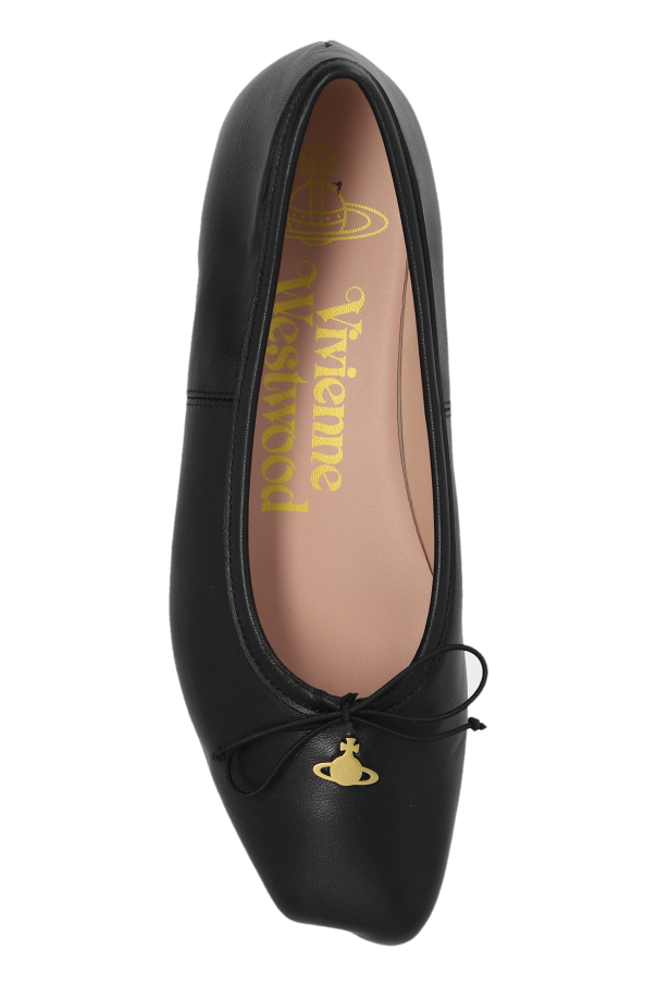 Introducing the sublime Brigitte Ballerinas from the exclusive collection by Vivienne Westwood. These black ballerinas epitomize timeless elegance and sophistication, crafted from the finest leather to ensure both durability and grace. The classic design of these ballerinas features a rounded toe and a simple, elegant silhouette that eschews unnecessary embellishments. A delicate bow adorning the front adds a touch of charm, while the golden designer logo in the shape of an orb on the toe cap accentuates the brand's exclusivity. The interior of the shoe also boasts a golden brand mark, visible in an overhead view. Why Should You Buy This Product? Crafted from high-quality leather for unmatched elegance and resilience. Classic, versatile black color that complements any wardrobe. Unique design details such as a small front bow and golden orb logo. Comfortable fit with a luxurious leather interior. Designed by the renowned Vivienne Westwood, a pioneer in avant-garde fashion.