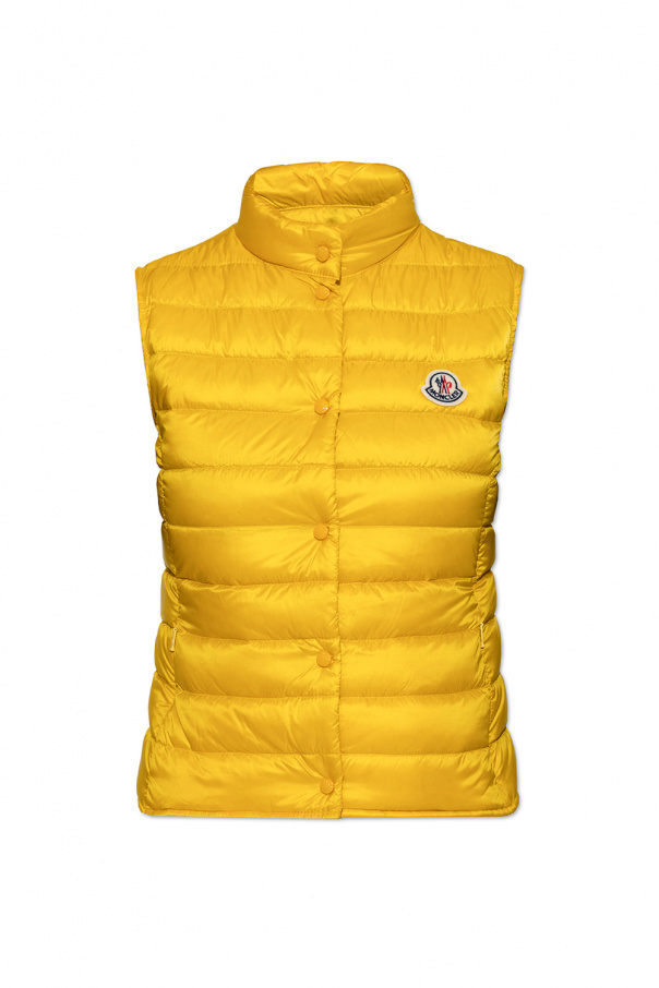 Yellow ‘Liane’ down vest from Moncler. Made of Léger nylon, this design features snap fastenings, the label’s signature Boudin quilting, fleece logo patch and two pockets with concealed zips. Comes with a drawstring bag.