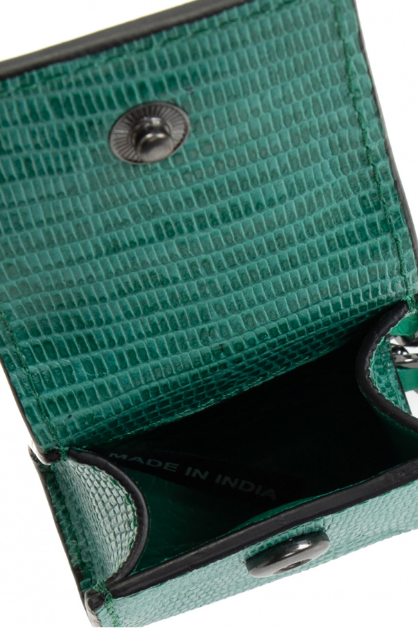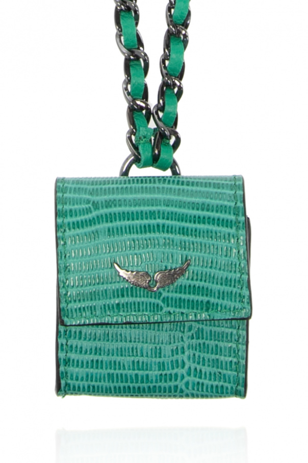 Green AirPod case from Zadig & Voltaire. Crafted from leather, this design features a snap closure, logo appliqué, shoulder bag, one internal compartment and silver-tone metal hardware.