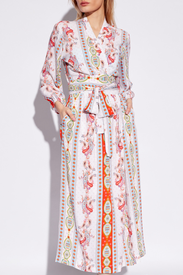 Introducing the "Rachel" Beach Dress by renowned designer Melissa Odabash, a quintessence of beachside elegance and versatility. Crafted from a blend of lightweight fabrics, likely cotton or a cotton mix, this piece promises both comfort and style under the summer sun. Its predominant white hue is beautifully complemented by multicolored decorations featuring traditional ethnic or folk motifs, symmetrically arranged to create vertical stripes that elongate the silhouette. The "Rachel" dress boasts long sleeves and a midi length, offering a graceful flow and coverage. The loose fit is ingeniously designed with an adjustable waist tie, allowing for a customized silhouette that flatters every body type. The waist tie, adorned with patterns matching the dress, ties into a bow, injecting a touch of femininity and elegance. Additional details such as sleeve ties and a stand-up collar with a 'V' neckline add a formal touch, making this dress a standout piece in any beachwear collection. The meticulous attention to detail is evident in the texture and quality of the fabric, visible in close-up images that showcase the precision of the pattern details and the softness of the material, ensuring that the "Rachel" dress is not only stunning but also comfortable to wear. Why Purchase This Product? Unique, rich, multicolored pattern design that stands out. Versatile fit with an adjustable waist tie for a flattering silhouette. Made from lightweight, high-quality fabric perfect for summer days. Elegant details such as sleeve ties and a 'V' neckline add sophistication. Designed by the esteemed Melissa Odabash, guaranteeing exclusivity and style.