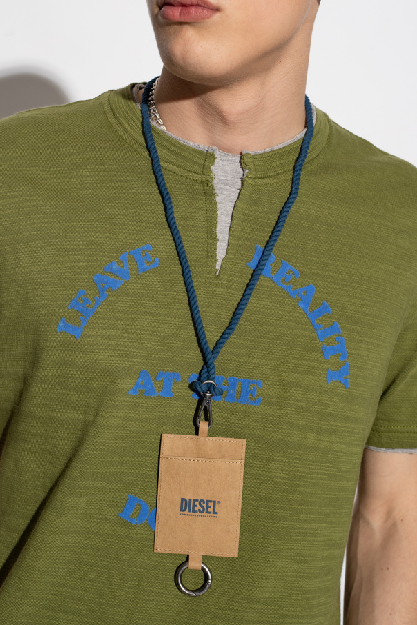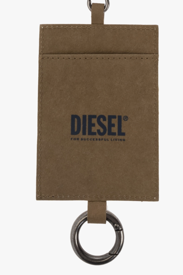 Brown ‘JACKRON’ card case from Diesel. Crafted from paper fibre, this item showcases a red and blue graphic print with the brand's logo, a detachable strap, a back card slots and a lobster clasp.