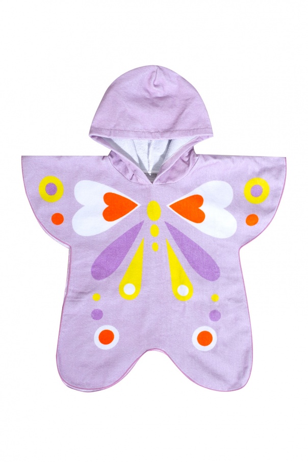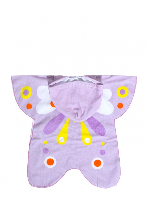 Purple hooded towel from Stella McCartney Kids. Made of cotton, this item is printed with a multicolored motif.