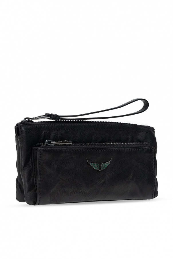 Black clutch from Zadig & Voltaire. Trimmed with calf leather, this design features a silver-tone logo, zip fastening, front zip pocket and two internal compartments.