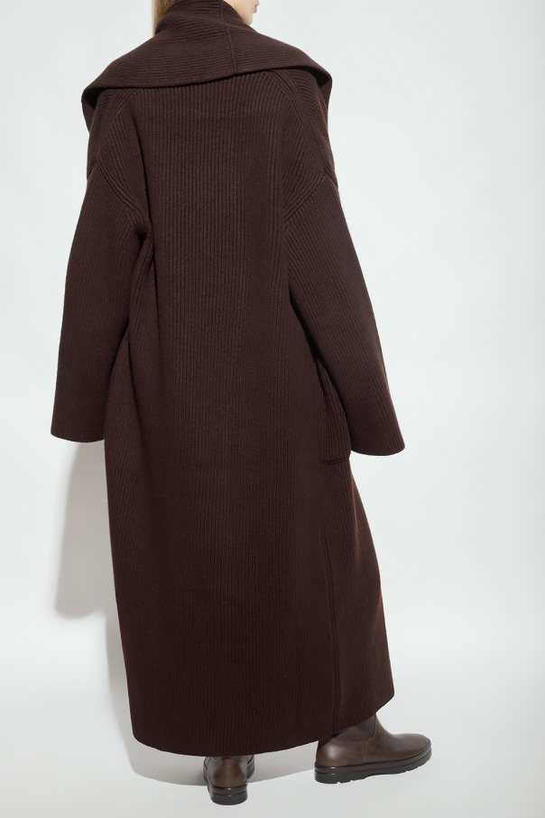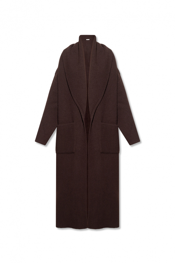 Long, brown ‘Daelan’ cardigan from The Row. Made of wool, this design features two front pockets.