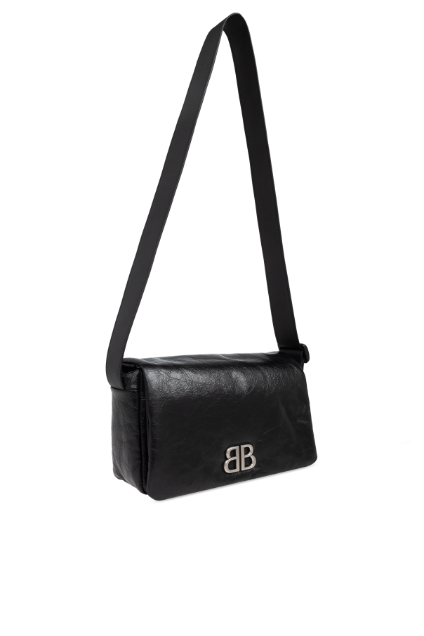 Introducing the Monaco Small shoulder bag by the illustrious Balenciaga, a paragon of sophistication and practicality. Exquisitely crafted with a rectangular silhouette, this medium-sized masterpiece boasts a front flap and sleek dimensions, perfect for everyday elegance. Enveloped in opulent black calfskin, the bag's subtly crinkled texture shimmers with understated modernity. The signature metal "BB" logo adorns the front, a discreet yet striking emblem of luxury. The wide shoulder strap, crafted from the same refined leather, ensures unparalleled comfort. Within, the bag reveals a spacious, black-lined compartment complemented by a magnetic closure and two additional slip pockets, enhancing its practicality. Why Choose This Product? A harmonious blend of luxury and functionality. Designed by Balenciaga, a name synonymous with visionary fashion. Subtle yet distinctive metal logo for brand recognition. Spacious interior with multiple pockets for optimal organization. Crafted from premium calfskin leather for durability and style.