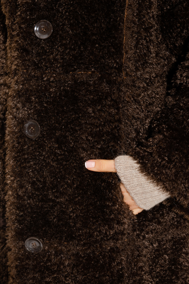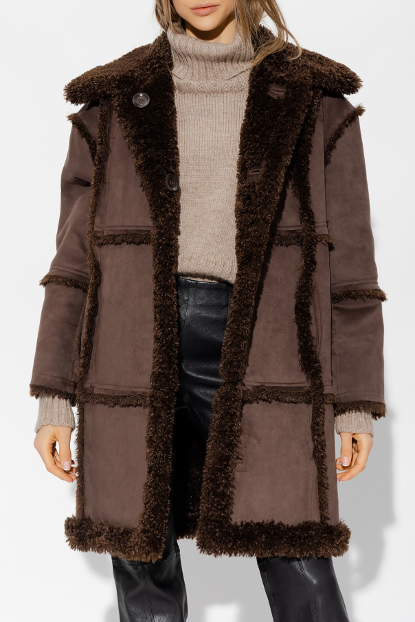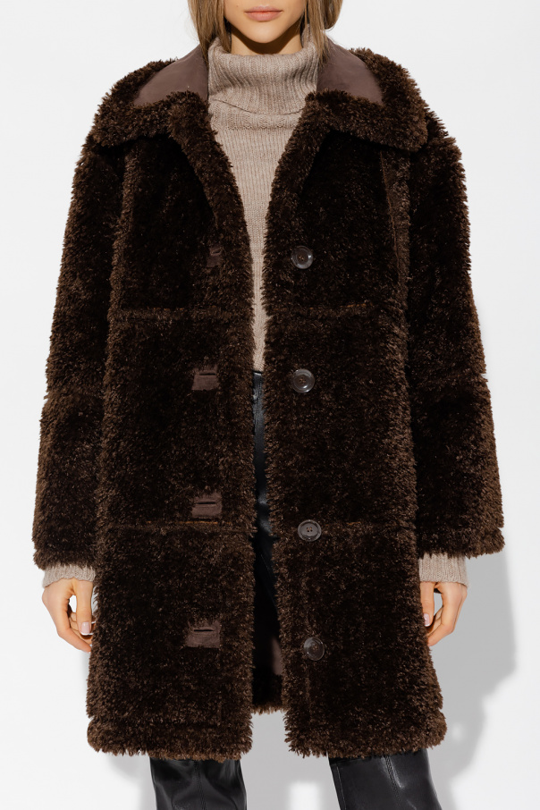 Brown coat from STAND STUDIO. Crafted from faux fur, this garment features button fastenings, two slip pockets and long sleeves.