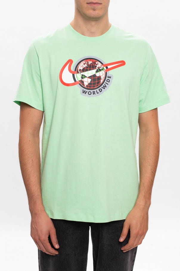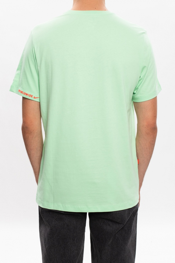 Green crewneck T-shirt from Nike. Crafted from cotton, it’s decorated with a colorful logo print.