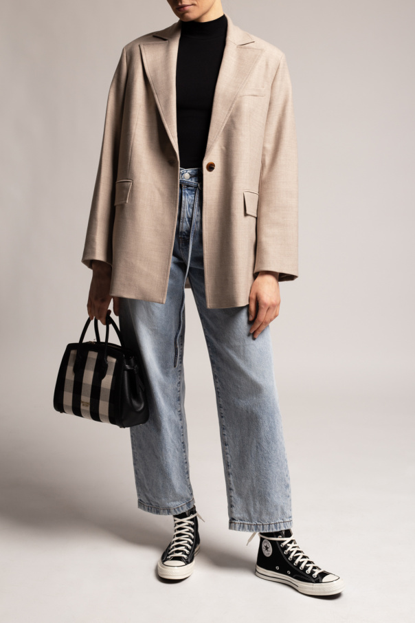 Black ‘Chuck 70 Hi’ sneakers from Converse. Crafted from canvas, this lace-up pair boasts a high-top silhouette, a logo patch on the side, silver-tone metal hardware and a cream and brown rubber sole.