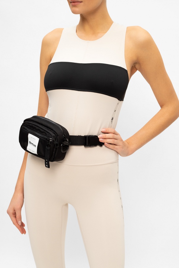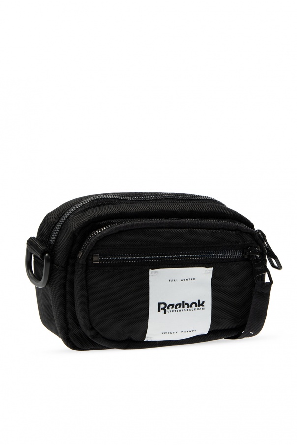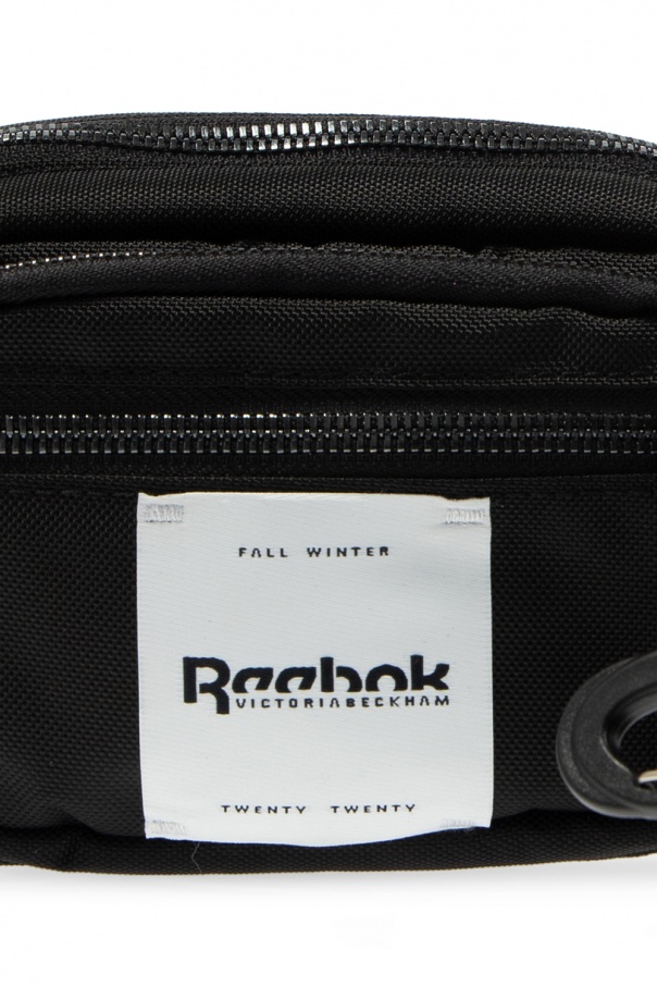 Black belt bag from Reebok x Victoria Beckham. Fastened with a zip, this design is enriched with a white logo patch and complete with two zip pockets, adjustable belt, detachable and adjustable shoulder strap and one internal compartment with one zip pocket. Can also be worn as a shoulder bag.