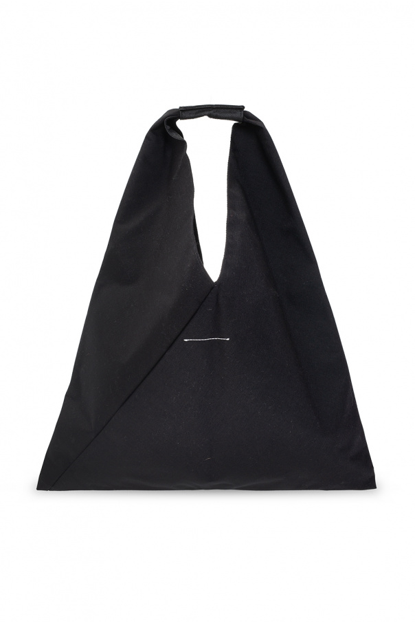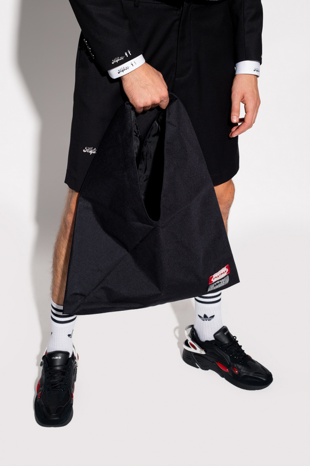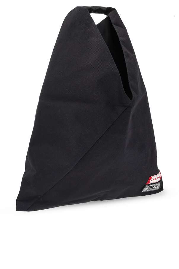 Black handbag from MM6 Maison Margiela x Eastpak. Emblazoned with a logo patch on the front, this design features a half-round handle and one internal compartment with a zipped pocket.
