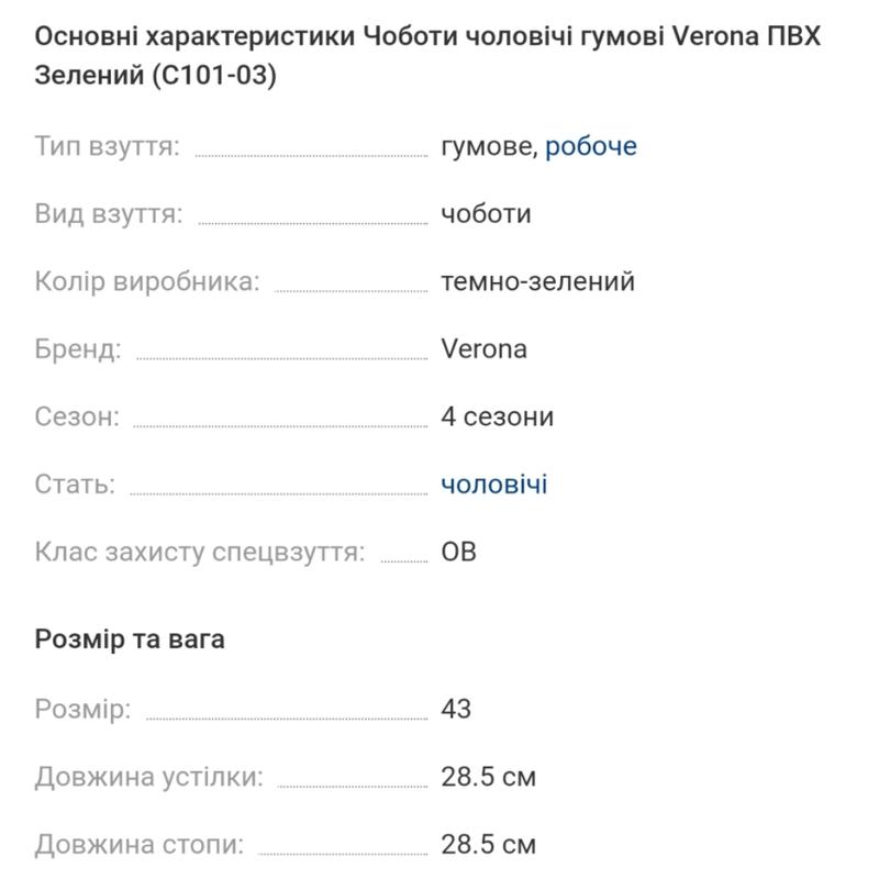 Сапоги мужские резиновые Verona ПВХ Зеленый (С101-03) мужские резиновые сапоги Классические резиновые сапоги, выполненные из ПВХ. Сапоги предназначены для защиты ног от влаги и грязи, при температуре воздуха от -5 градусов и выше. Резиновые сапоги имеют глубокий протектор, обеспечивающий хорошее сцепление даже с влажным грунтом. Высота сапог 34 см Характеристики Сапоги мужские резиновые Verona ПВХ Зеленый (С101-03)...