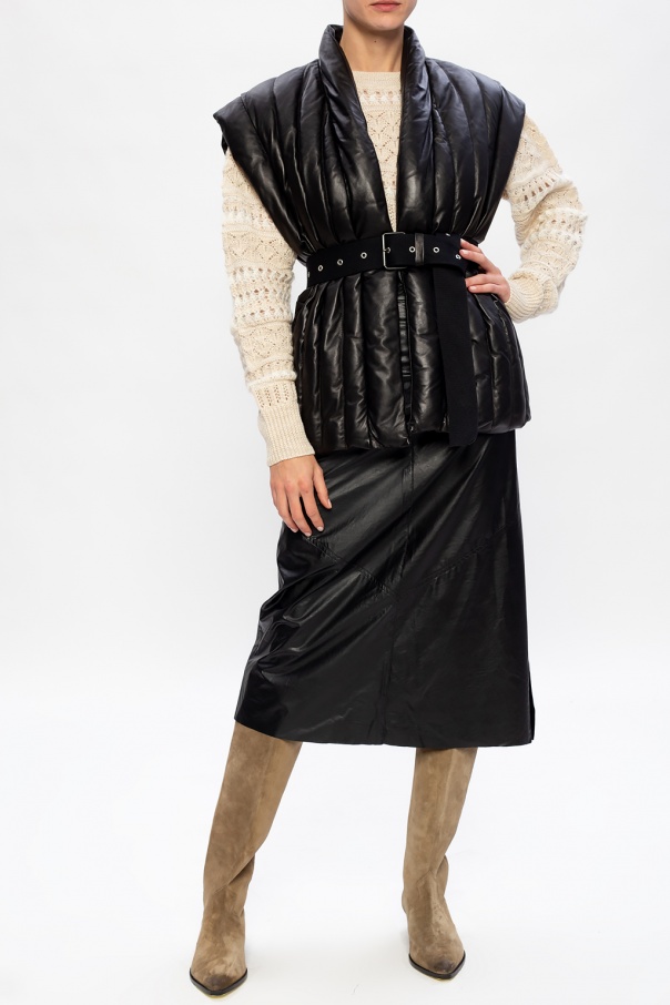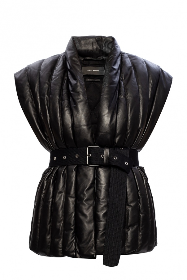 Black quilted vest from Isabel Marant. Crafted from lamb leather, this garment comes with a belt.